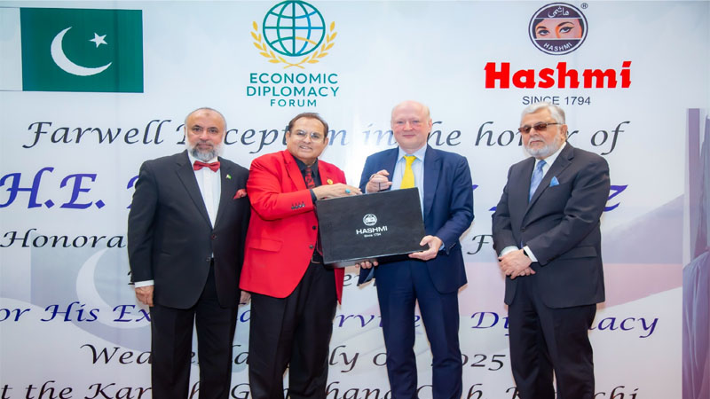 Pakistan: Hashmi Pakistan, a trusted leader in health and beauty industry, in collaboration with the Economic Diplomacy Forum (EDF), hosted a prestigious farewell reception at the Karachi Gymkhana in honor of the honorable Consul General of Federal Republic of Germany, His Excellency Dr. Rüdiger Lotz, marking the conclusion of his diplomatic mission in Pakistan.